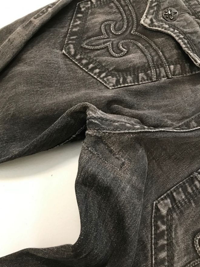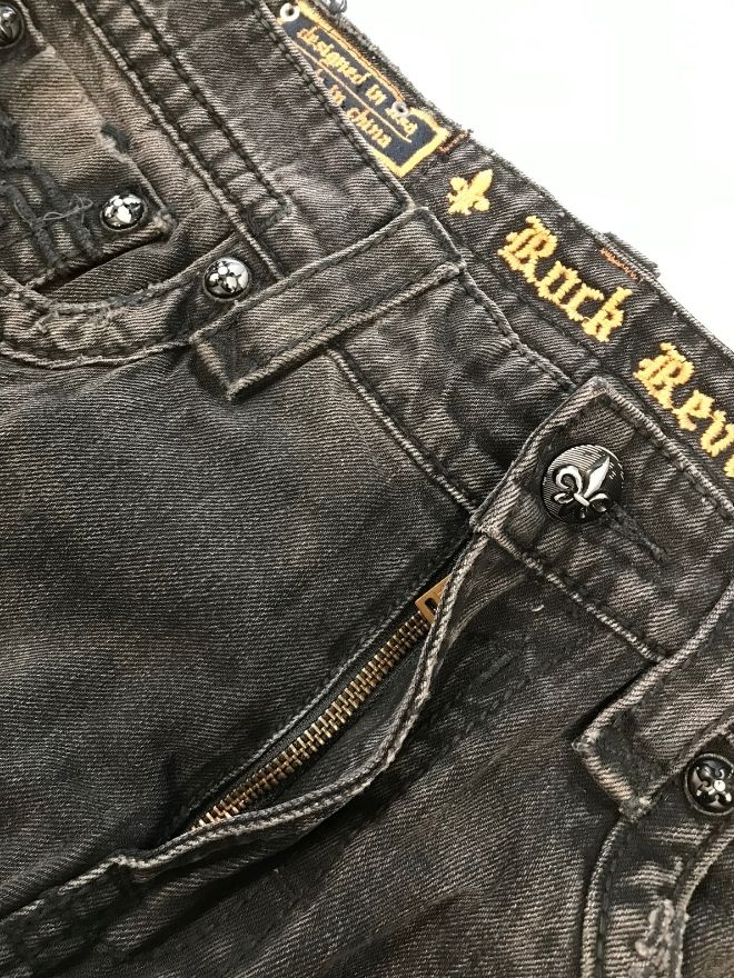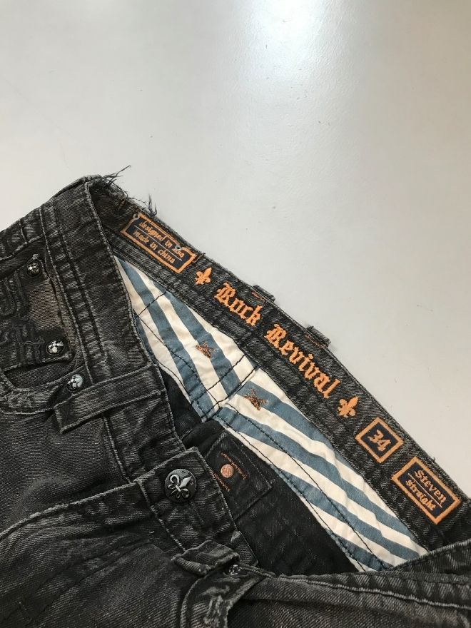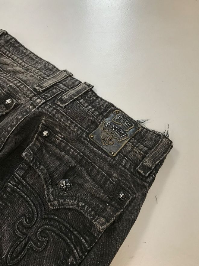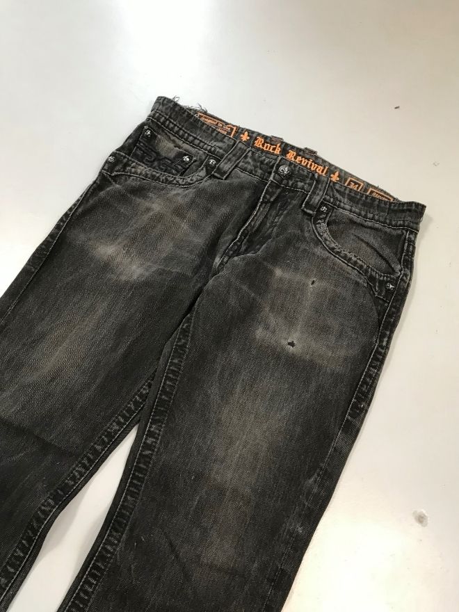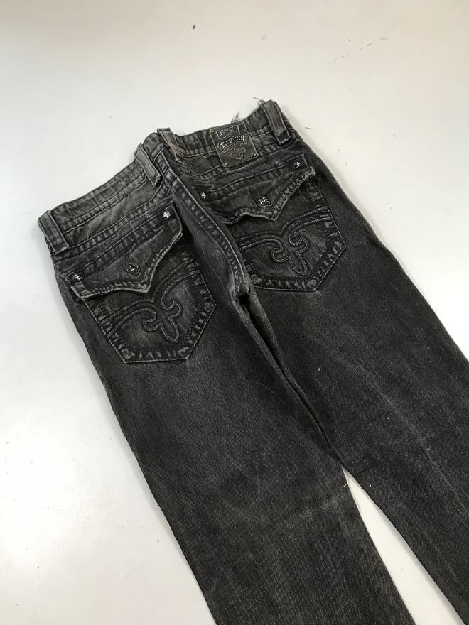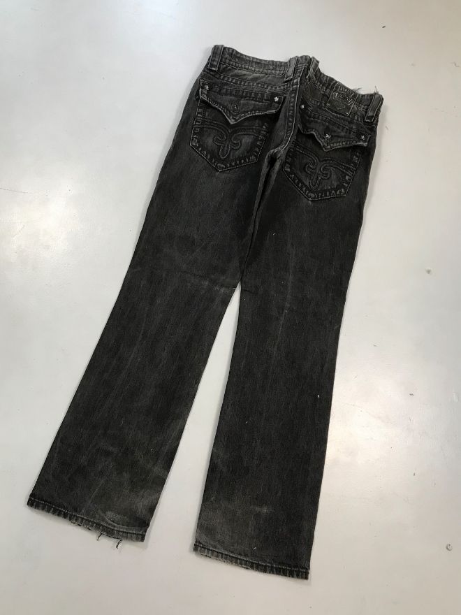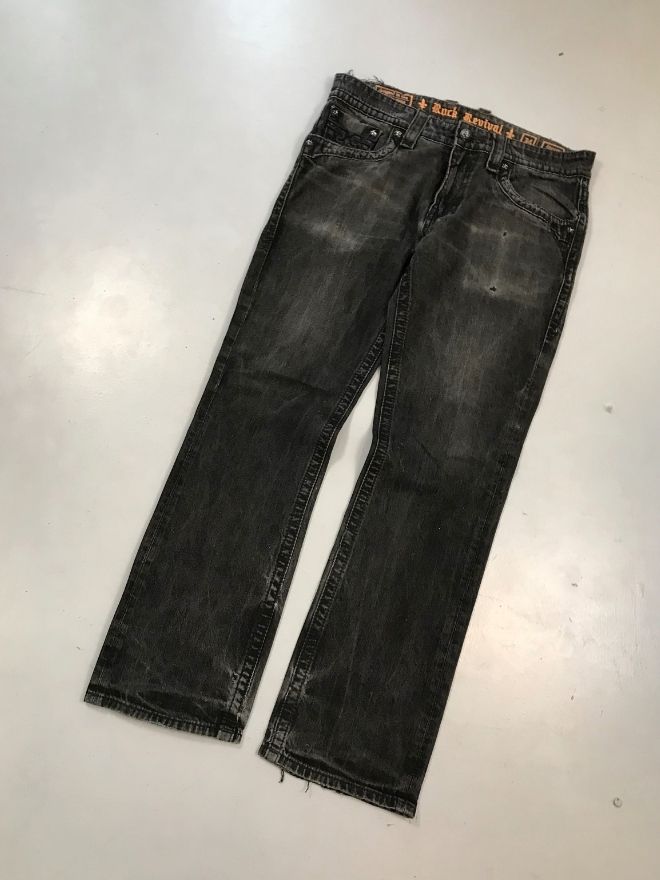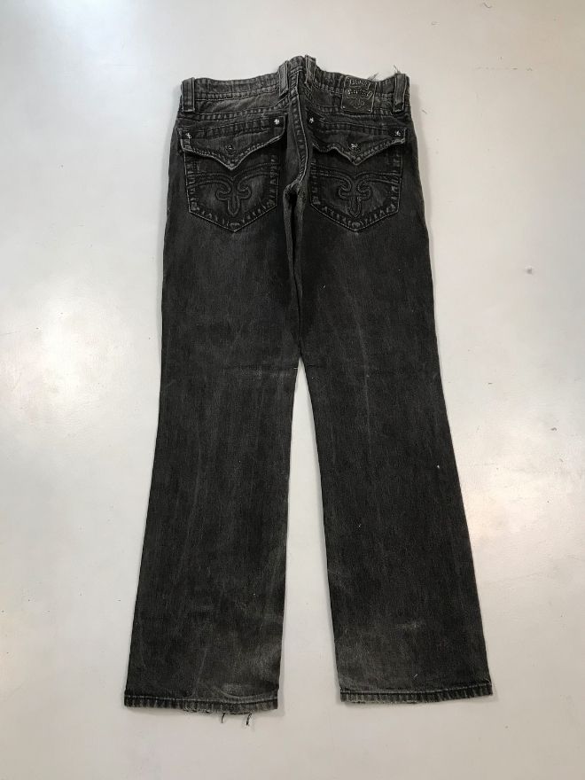 Authentic Vintage Rock Revival Bootcut Denim featuring signature triple-stitch detailing and classic embroidered pocket design.