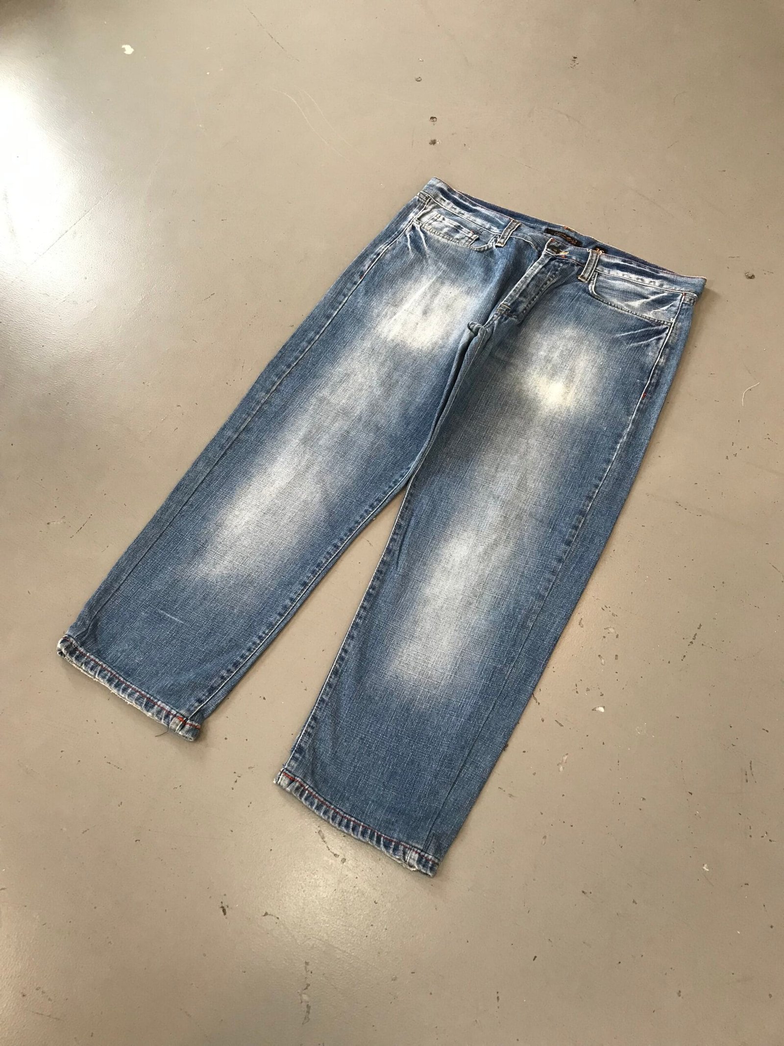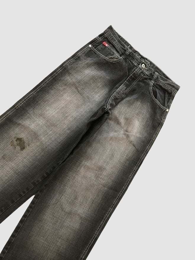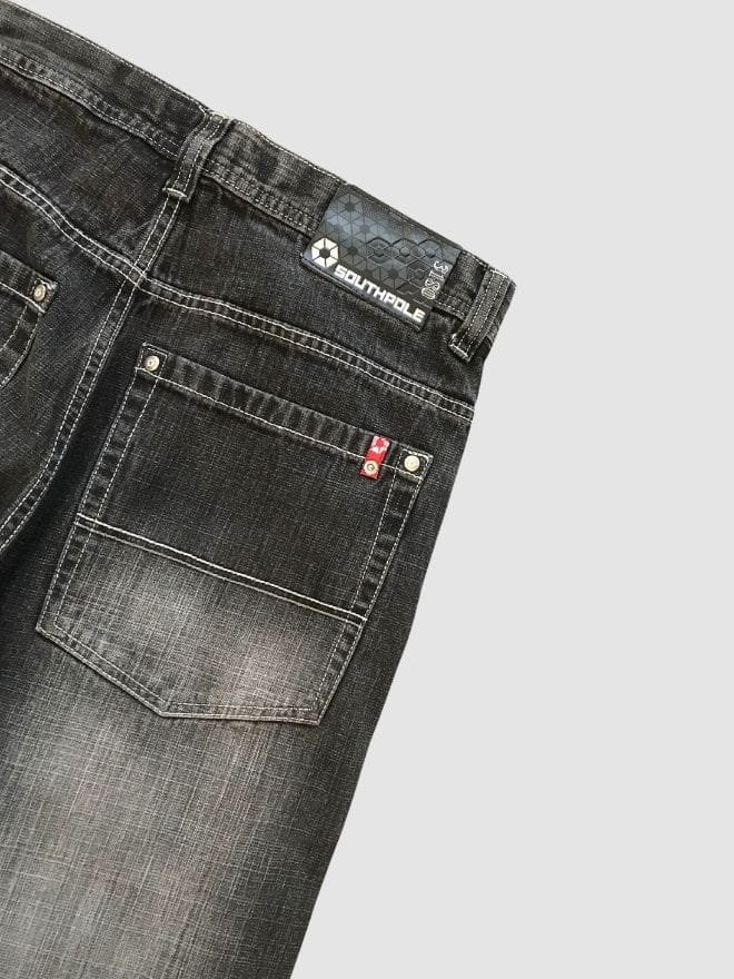 Vintage Southpole Red Tab Denim – A Piece of Y2K History. These vintage Southpole Red Tab jeans are a relic of the early 2000s, representing a key moment in hip-hop fashion. Featuring the signature red tab [mention any specific details about the tab or its placement], these jeans are a must-have for any collector or fan of Y2K style. [Mention other details like the wash, any unique distressing, the style of the pockets,