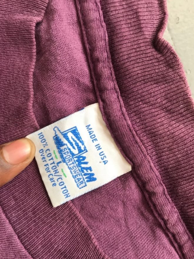 Genuine Vintage Salem: This is a true vintage t-shirt from Salem Sportswear, a prominent manufacturer of sports apparel in the late 20th century. The tag and single stitch construction proudly showcase its authentic retro origins.