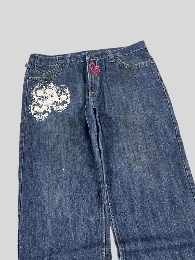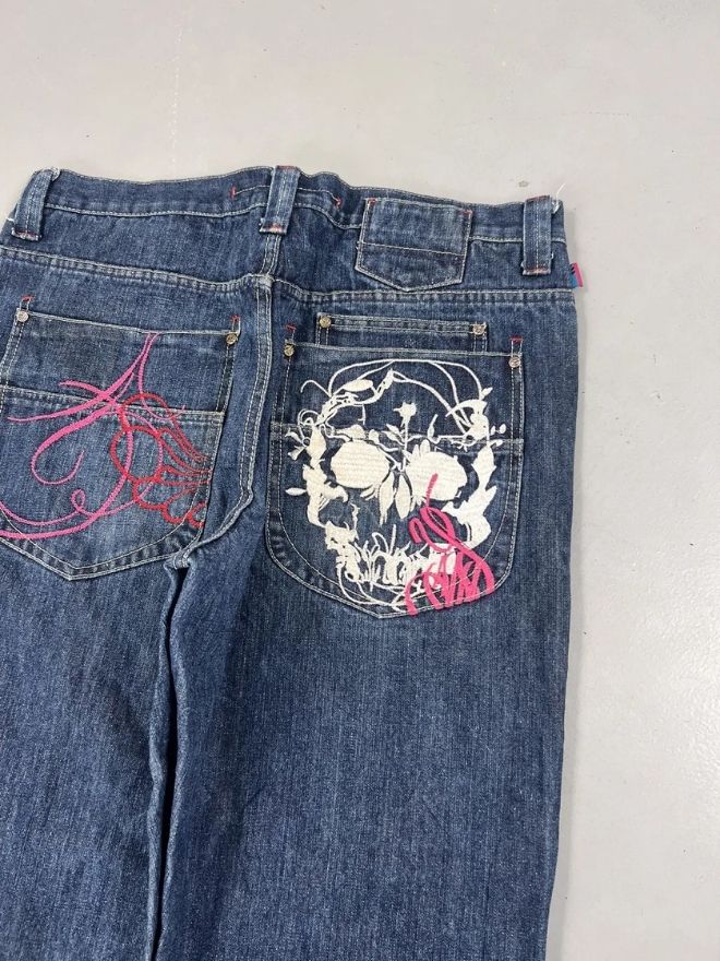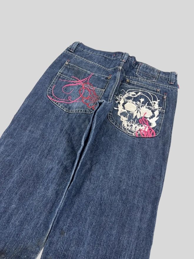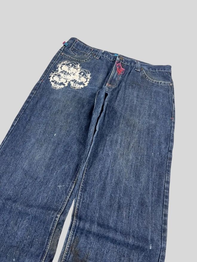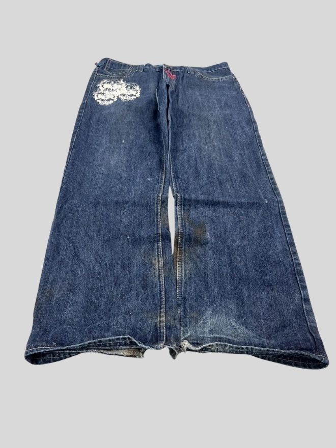 The heavy denim construction offers durability while maintaining a comfortable, loose fit ideal for everyday wear or styling into baggy street looks. The embroidered detailing adds strong visual character, making this piece a great addition for collectors of vintage Southpole, Y2K denim, or archive streetwear. A statement pair that pairs perfectly with oversized tees, hoodies, or varsity jackets.