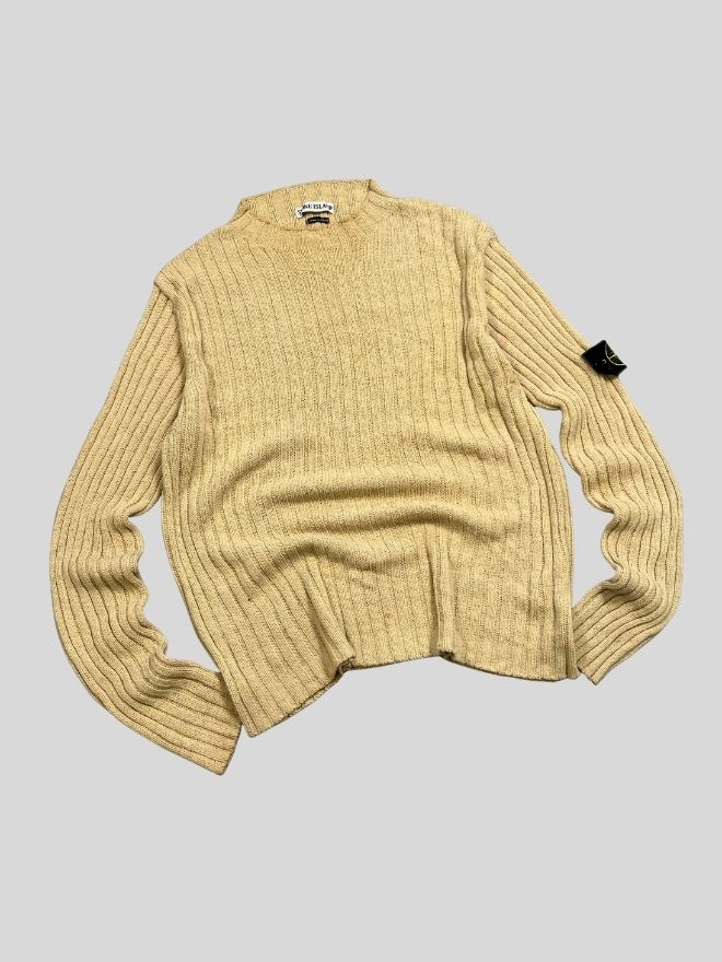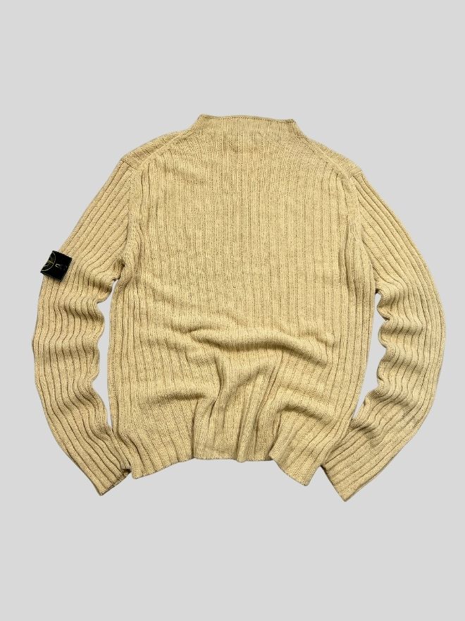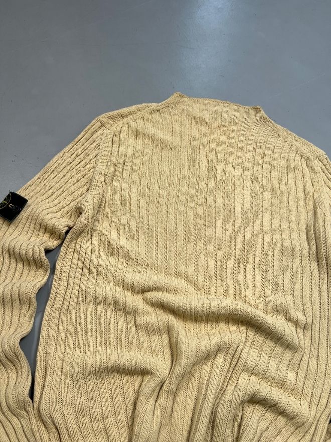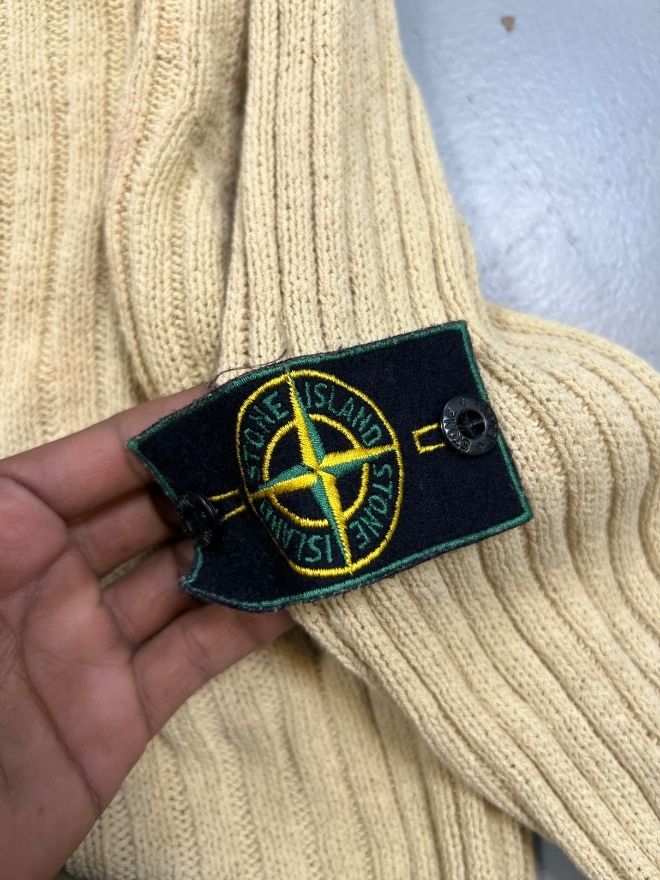 This Vintage Stone Island Button-Up Knit Sweater is a timeless piece that reflects the brand’s strong heritage in functional streetwear and innovative design. Featuring a classic button-up construction, this knit offers versatility and comfort, making it perfect for both casual and layered outfits. The yellow colorway adds a unique vintage appeal while still remaining wearable and stylish.