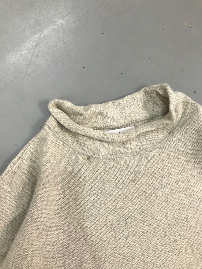 Tagged Size L, fits best for a US Medium to slim Large, depending on styling preference. The sweater remains in good used condition with natural signs of age consistent with vintage wear. Please review photos carefully — the exact item shown is the exact one shipped.