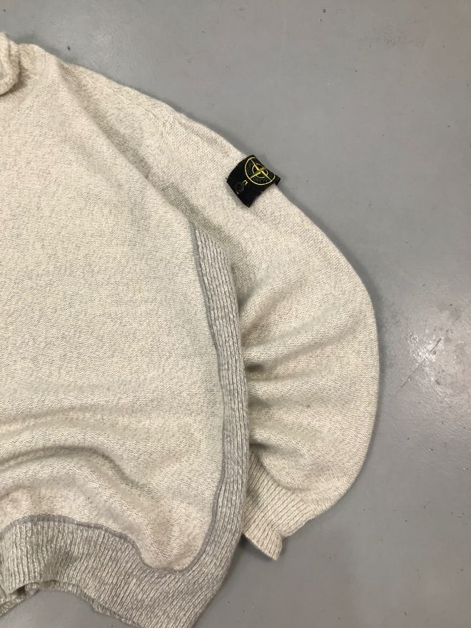 A rare and timeless Vintage Stone Island knit sweater, crafted in a soft grey tone with minimalist detailing and the brand’s unmistakable iconic aesthetic. Known for premium construction and military-inspired design, this Stone Island piece captures true vintage character — subtle wear and patina only add to its authenticity and appeal.