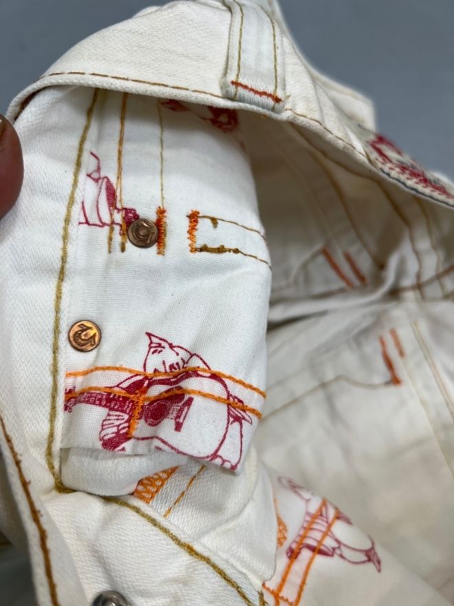 Designed for both everyday wear and statement outfits, this piece works well with graphic tees, hoodies, or layered streetwear fits. A great option if you’re looking to add rare embroidered denim to your vintage rotation.