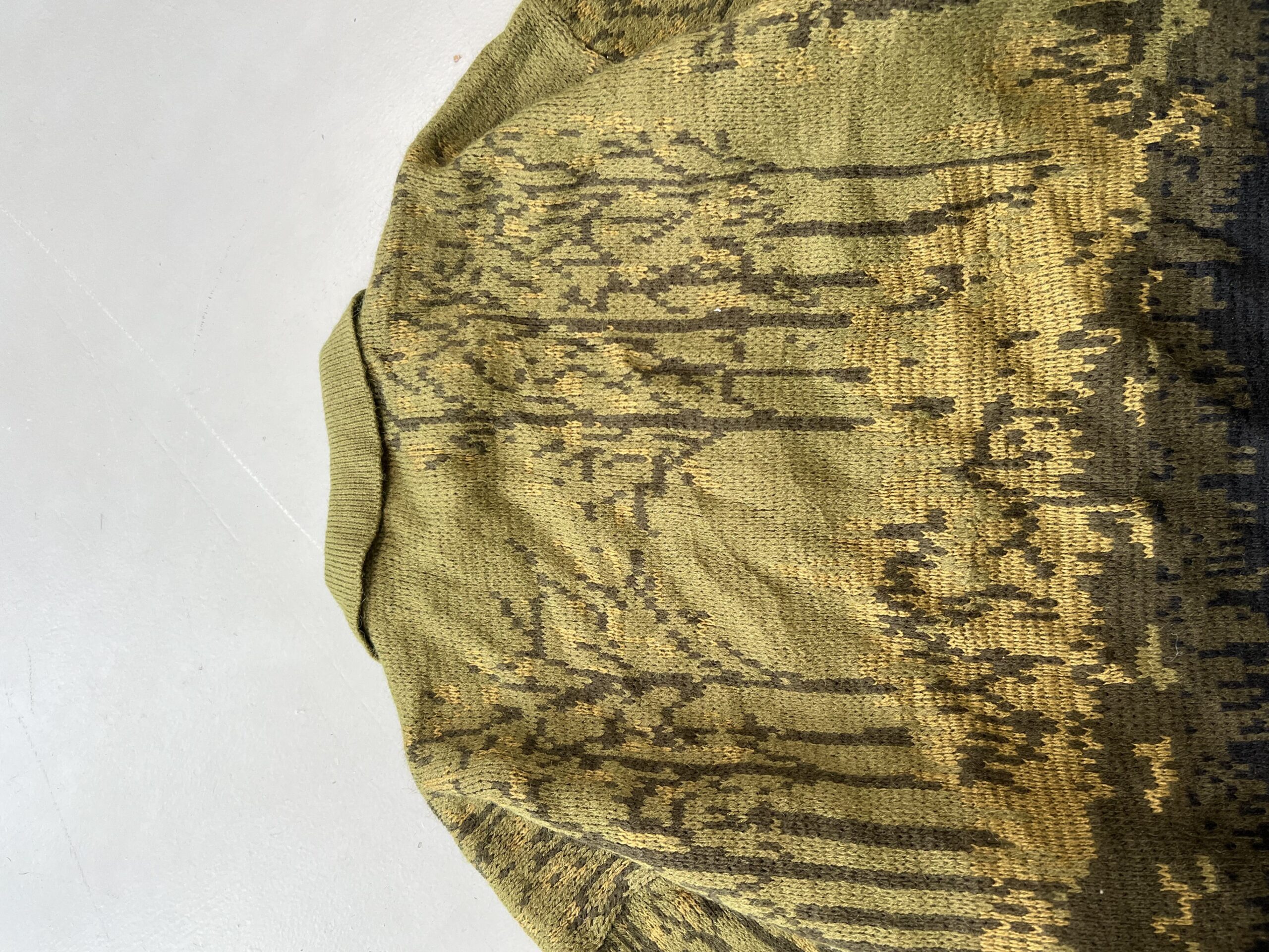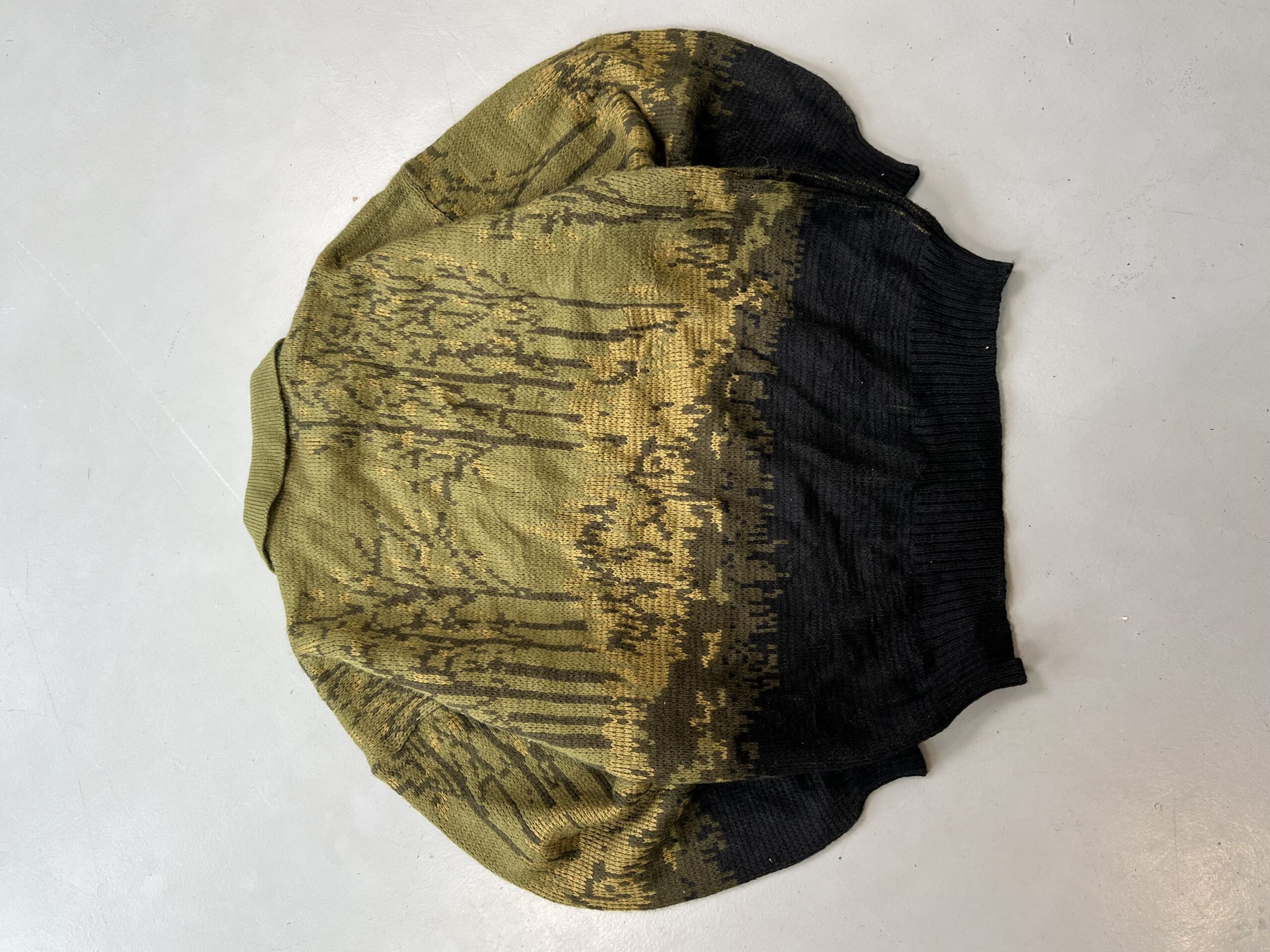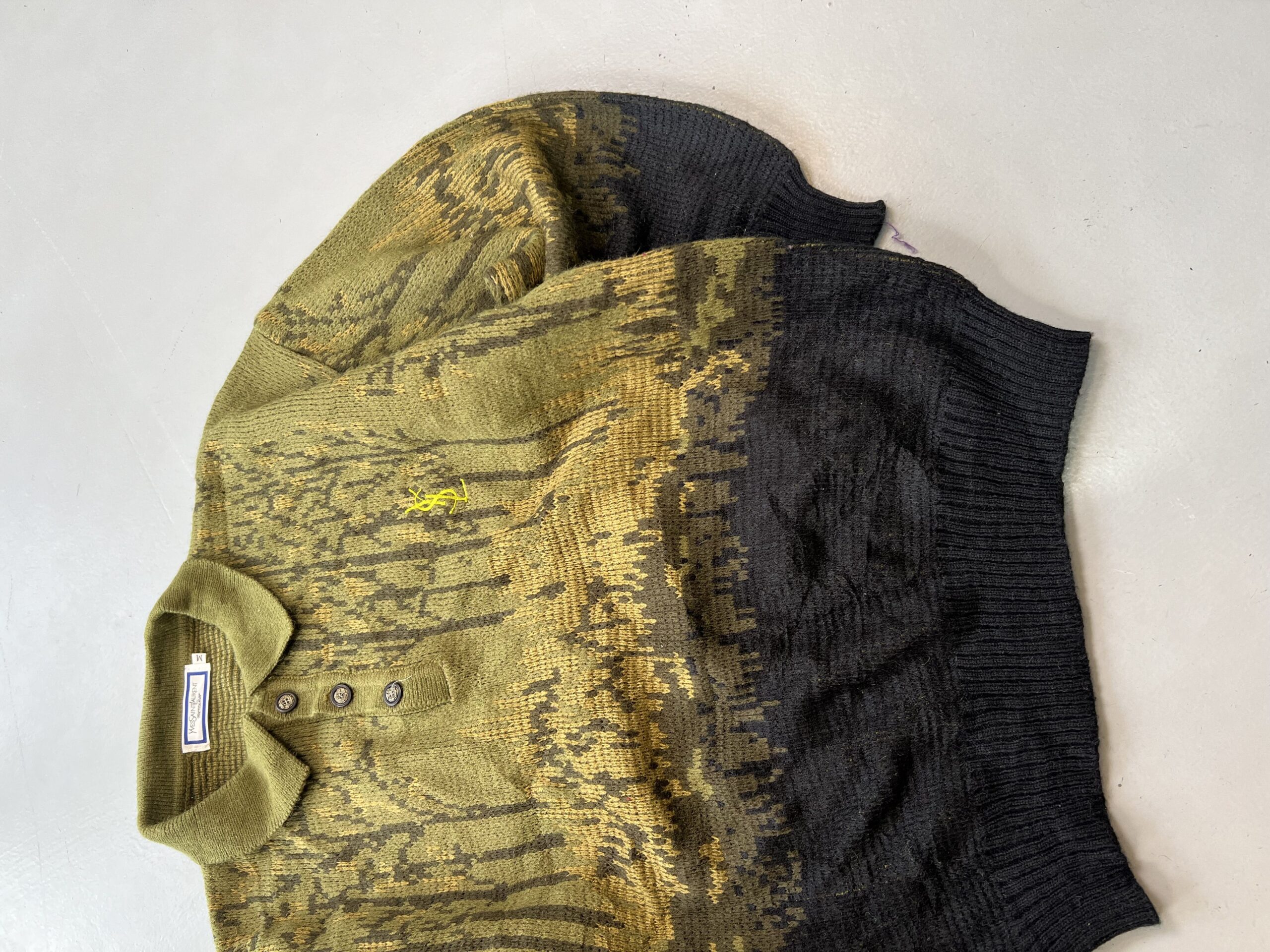 Authentic Vintage Yves Saint Laurent multicolored knit sweater featuring a bold pattern and relaxed streetwear silhouette.