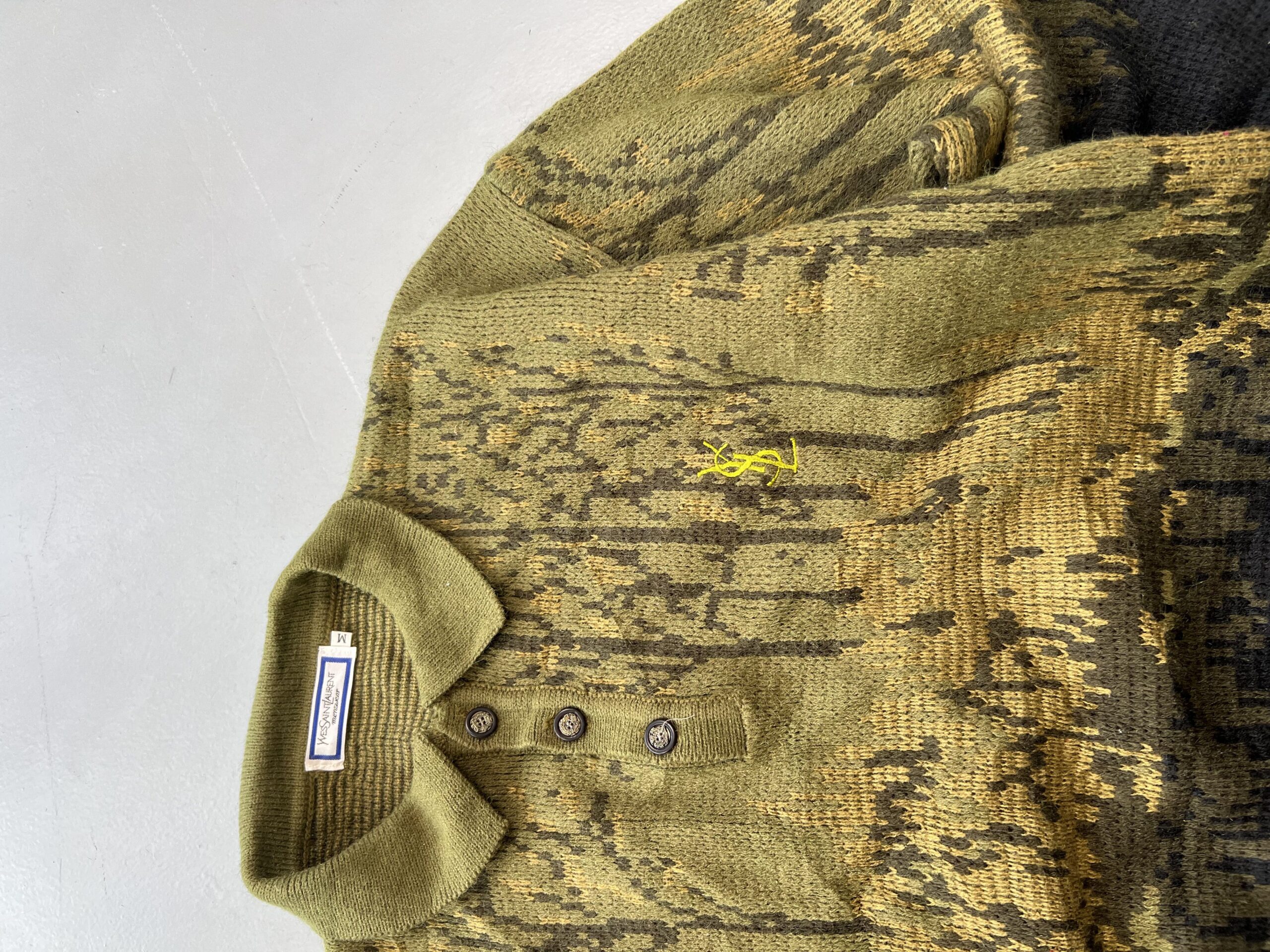 This Vintage Yves Saint Laurent multicolored knit sweater is a classic designer piece that showcases YSL’s timeless approach to bold patterns and effortless luxury. The multicolor knit design gives it strong vintage character while maintaining a wearable, relaxed streetwear fit.