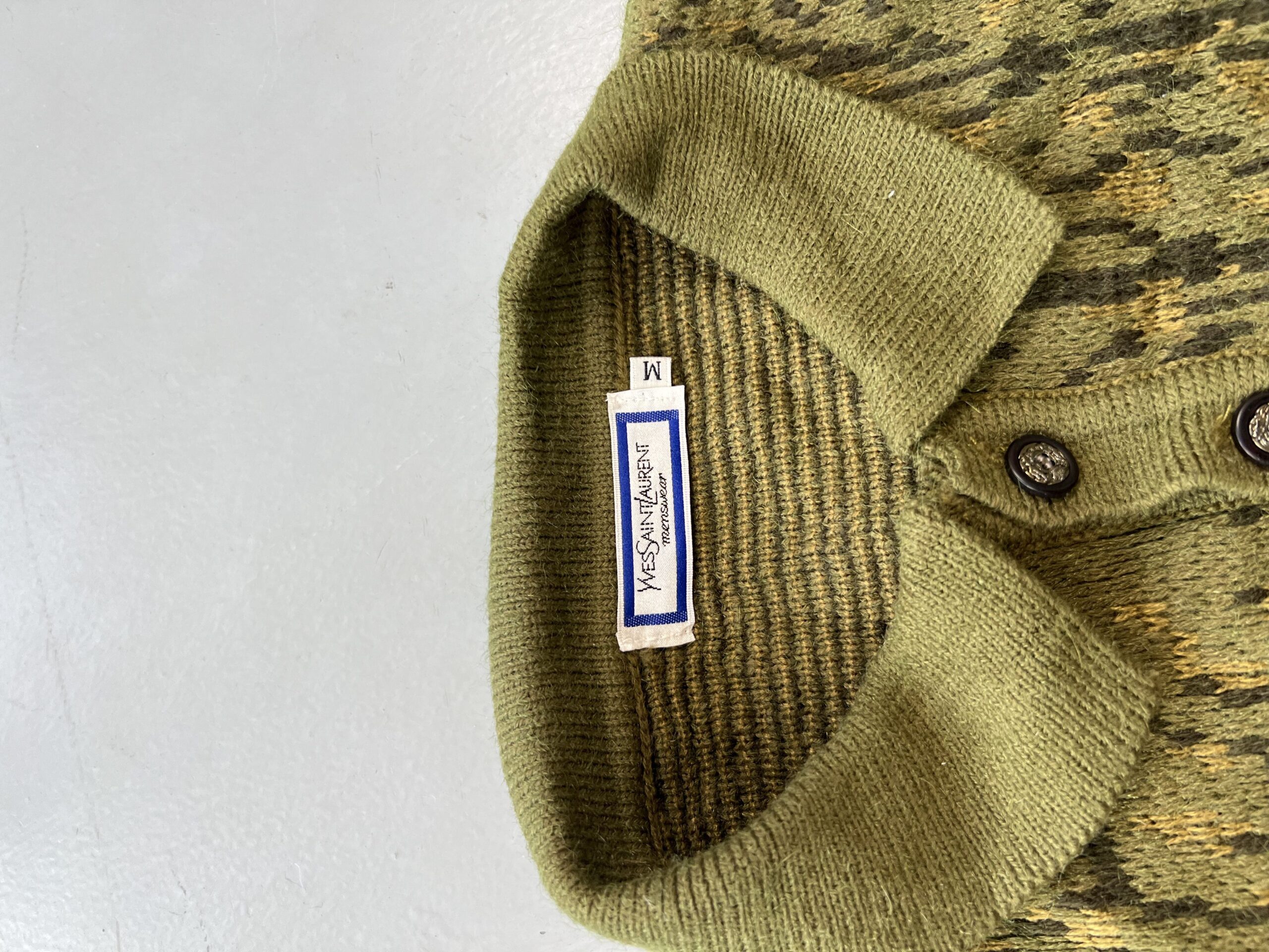Although tagged as size M, it fits closer to a men’s Small—please refer to measurements for the best fit. The sweater is perfectly fine, comfortable, and well maintained, making it an excellent option for both daily wear and vintage designer collectors.
