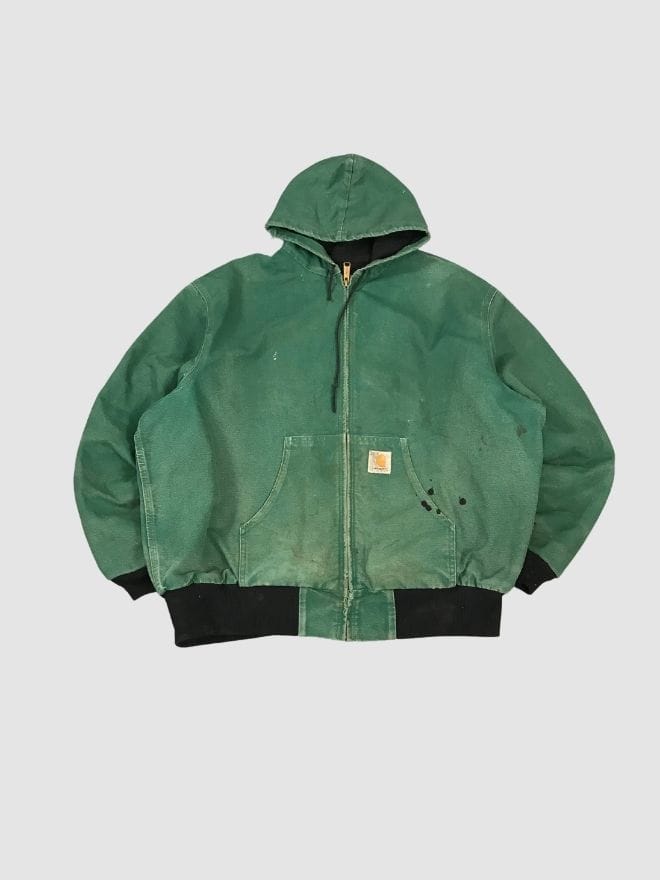Rare Vintage Carhartt Sunfade Active Jacket – Perfectly Worn-In, Exceptionally Rare. This vintage Carhartt Active Jacket has achieved the ultimate sun-faded patina, creating a one-of-a-kind look that can’t be replicated. The rare [mention specific details about the rarity, e.g., specific model number, specific color, specific year range, etc.] adds to its collectibility. [Mention other key features like the lining, hood (if present), pockets,